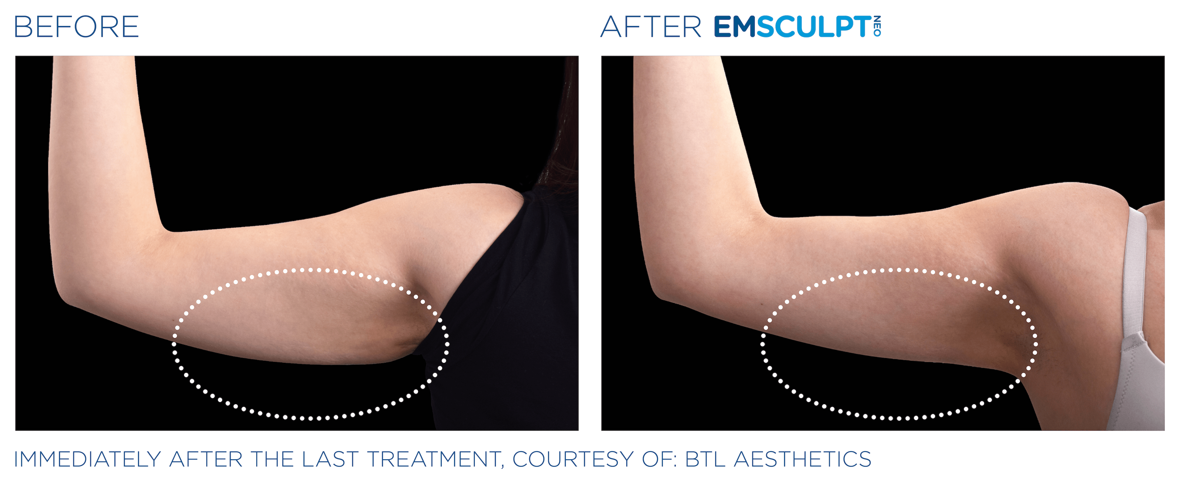 The addition of radiofrequency (RF) in Emsculpt NEO heats the tissues, resulting in the PERMANENT destruction of fat cells, as well as enabling skin firming in the treated areas. You’ll feel gentle heat that slowly intensifies to target subcutaneous fat cells, which are then naturally eliminated by the body.